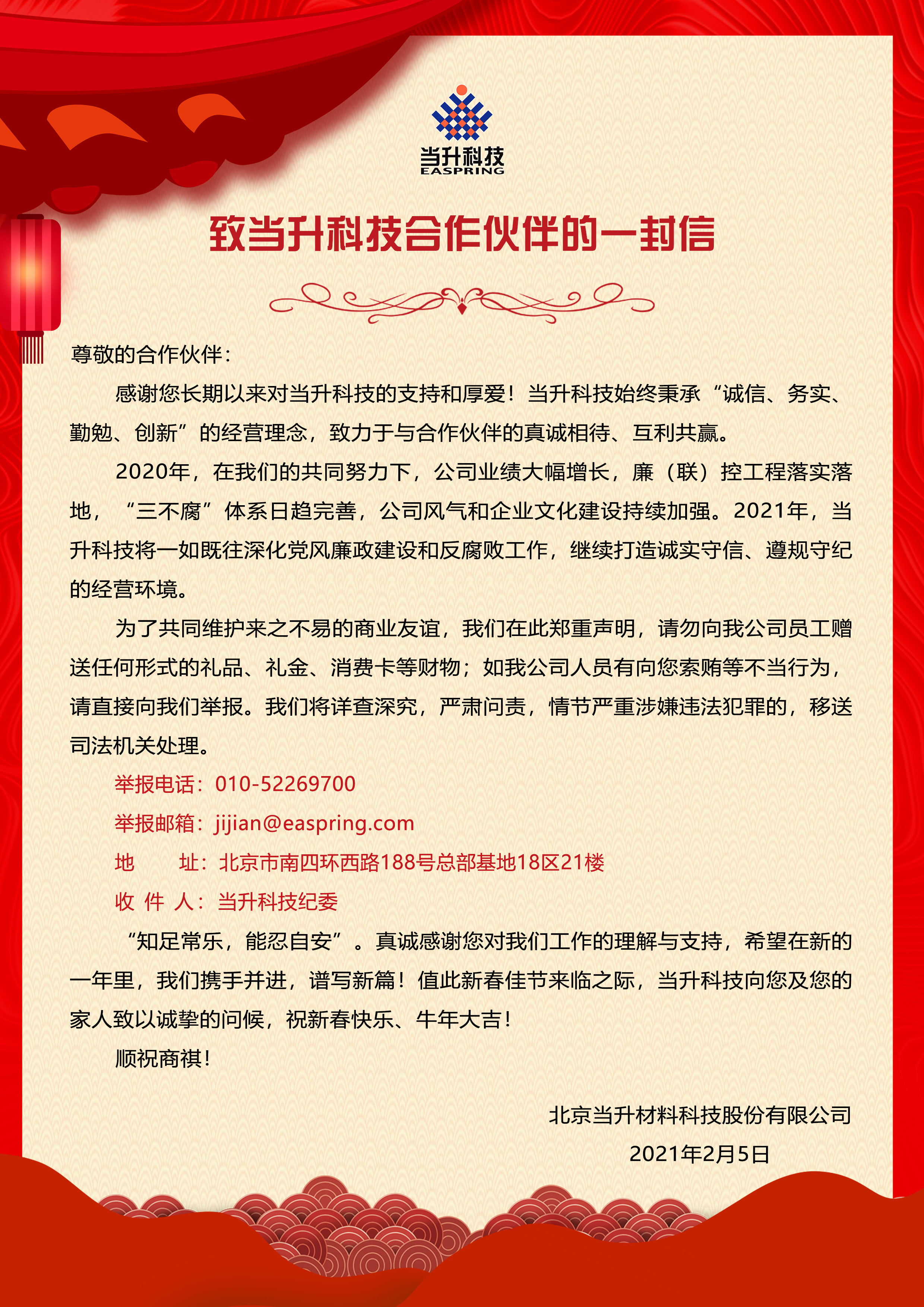 致當(dāng)升科技合作伙伴的一封信