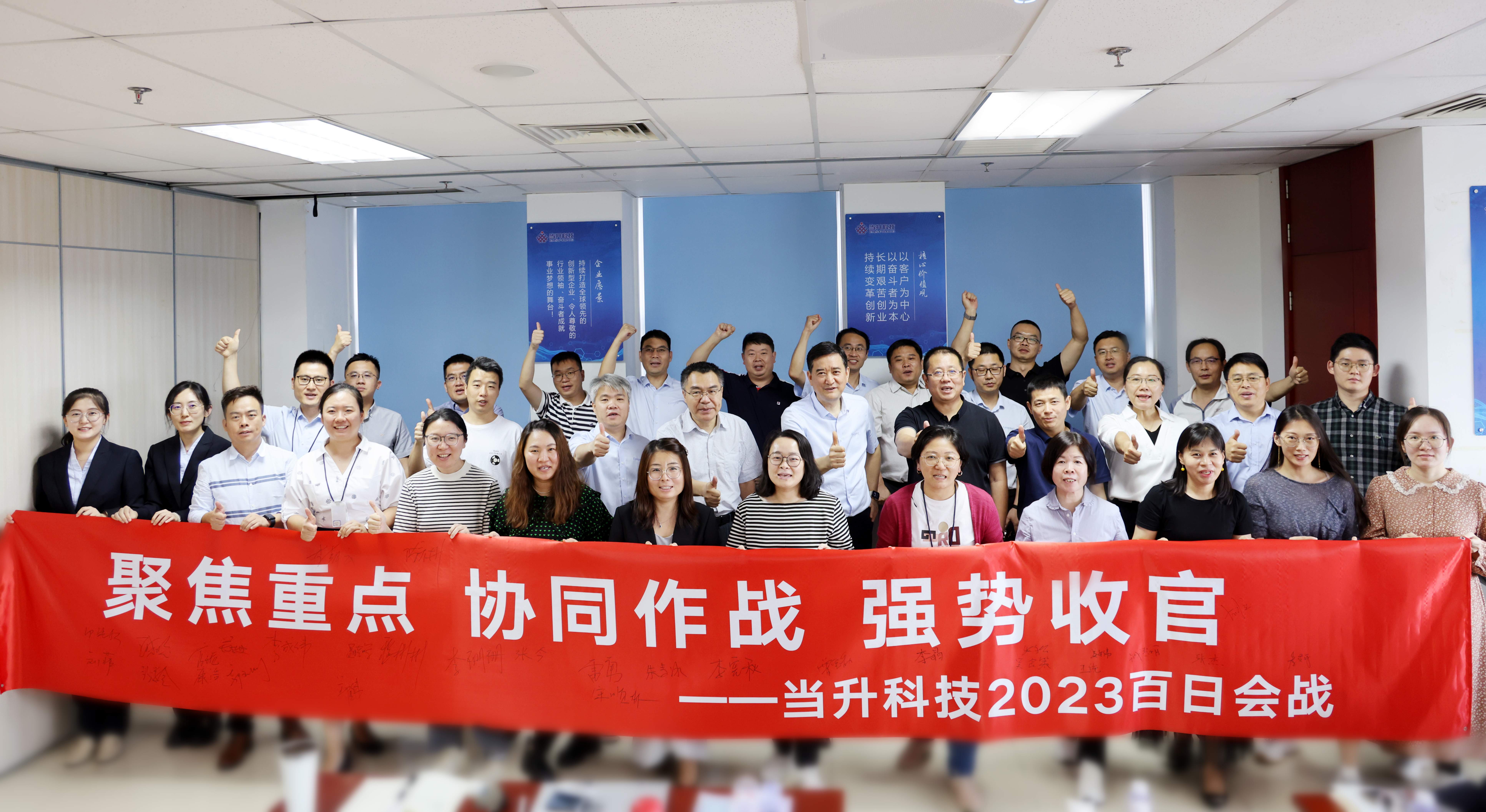 會上,公司各分管領導逐一簽訂了軍令狀,并帶領各自團隊喊出了行動口號,表達了背水一戰的信心和決心。各中心及分子公司將以百日會戰為契機,搶抓機遇,狠抓經營,持續激發員工努力拼搏、主動作為的工作熱情,進一步提振各部門協同作戰、再創佳績的工作信心,為全面完成2023百日會戰目標和年度重點工作任務踔厲奮發、勇毅前行。